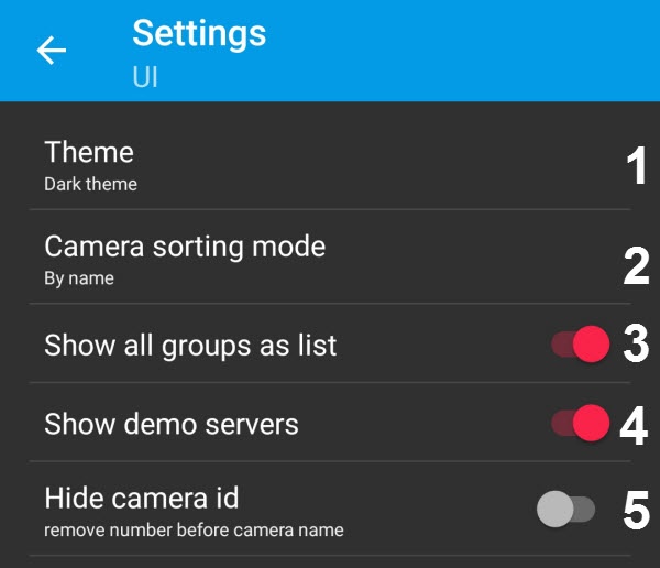 Camera sorting mode (2): select the type of cameras sorting in the multiview mode: By identifier, By name (default), By server or Manual.