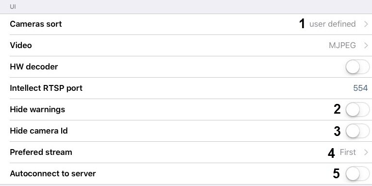 - Select the way of camera sorting in the mobile iOS Client (1).
