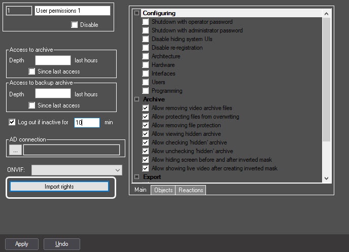 Axxon PSIM allows several users' rights to be combined into a newly created User permissions object. While the copy-paste function (Ctrl+C - Ctrl+V) just copies all users' rights parameters, the function of permissions combining unites several users' permissions into the configured object.