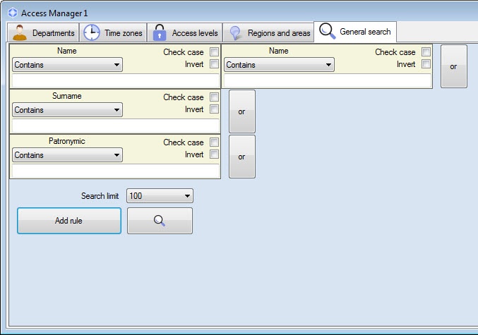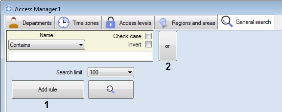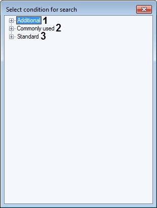 - Click the Add rule button (1) to add AND rule or the or button (2) to add OR rule. The Select condition for search window will open.