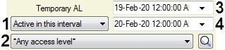 - Active in this interval - the selected interval between the start and end of the temporary access level. If the interval includes a day when the temporary access level is not valid, then the search will have no results.