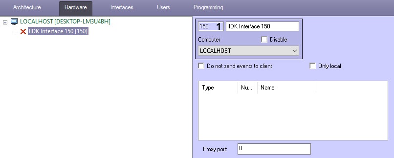 You also need to create Video Capture Device, Camera and Sensor objects corresponding to the connected hardware. Creation and configuration of these objects is described in the INTELLECT Software Package. Installing and configuring security system components.