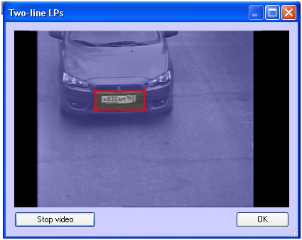 Click OK and the specified area parameters will be automatically entered in the Maximum width and Maximum height fields. button to set these parameters. In the Two-line LPs opened box click the Stop video button when the appropriate frame is appeared and select the area with the required size. - Set the minimal area width and height where the search of LP is performed (is set in percent of the fulll frame) by analogy with the Maximum width and Maximum height parameters – see item 8 (11).