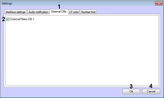 Set the checkboxes next to those External Plates DB that should be used as the Active tracking databases (2).
