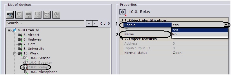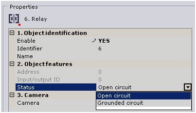 If a relay is physically connected to the system independently of a video camera, then you must specify the video camera to which it will be linked in the settings of the given relay. When you do this, the Relay object will appear under the specified Camera object in the object tree.