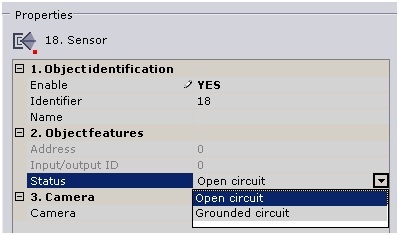 If a sensor is physically connected to the system independently of a video camera, then you must specify the video camera to which it will be linked in the settings of the given sensor. When you do this, the Sensor object will appear under the specified Camera object in the object tree.