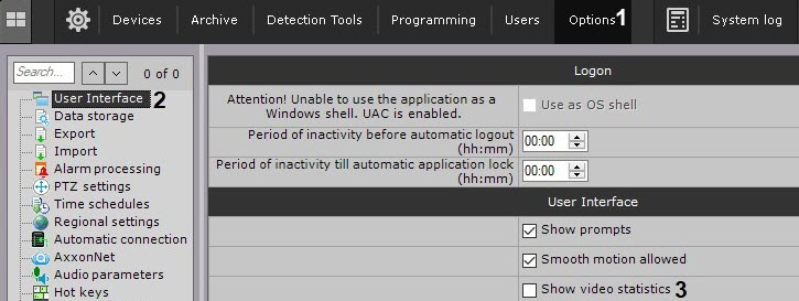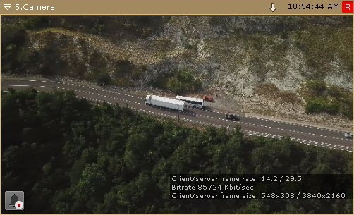 The video statistics will now be displayed in the surveillance window for the following modes: Live Video, Archive, Alarm, and Archive Search.