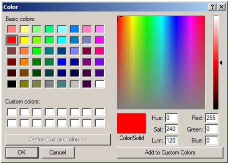 - To enable highlighting of found words, double-click the Highlight found words color box and select the color in the standard Windows color selection box that opens (2).