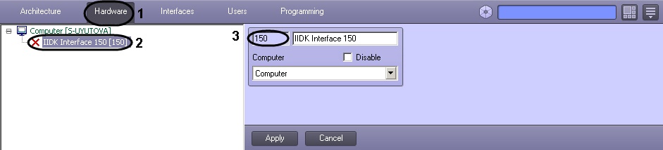 - Create an IIDK interface object under the Computer object (2). Set the IIDK interface object number (3).