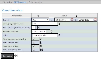- Click the AUTO reports tab (1), wail till the table appears, then click the Zone time slice link (2).