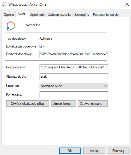 - We właściwościach każdego skrótu, w linii Element docelowy, dodaj parametr -monitor=N.
