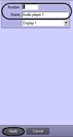 In the window, that will open, set the name and number of the object Audio player and then click Apply button.