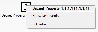 The You can manage a property of the BACnet channel properties are managed in the Map interactive window using the the menu of the Bacnet Property object functional menu object: