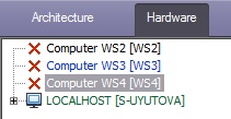The role of the computer in a distributed system is displayed in color in the object tree: