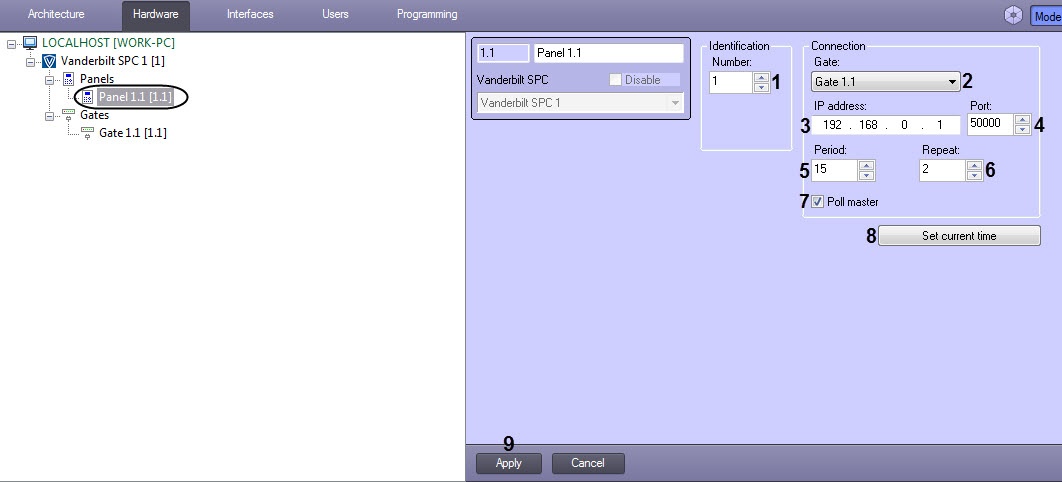 - Go to the Panel object setup panel which is created on the base of the Vanderbilt SPC object.