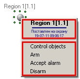 - Alarm in the region. Alarming event from one or several objects that belong to this region is detected