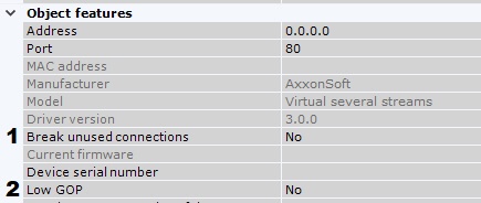 - Jeśli chcesz przerwać strumieniowanie wideo z kamery do Serwera gdy nie jest ono potrzebne, zaznacz Tak dla parametru Przerwij nieużywane połączenia (1).