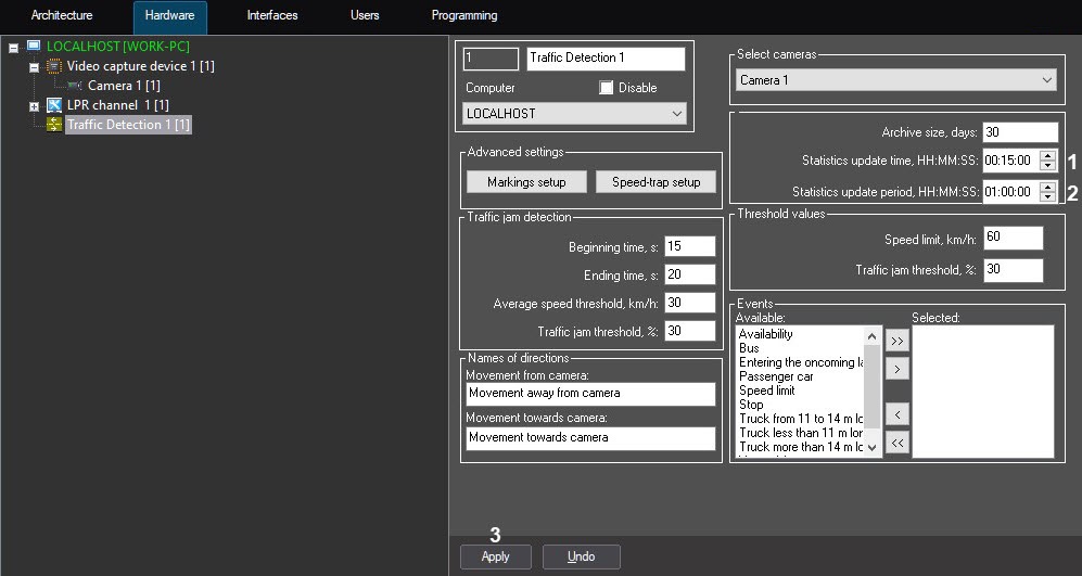 - In the Statistics update period, HH:MM:SS field (2), specify the time period for which the current data statistics will be displayed.
