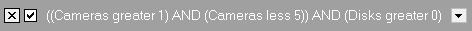 Expressions = 2 for condition (Cameras equal 2) and ((Disks equal 1) or (Disks equal 2)) - LocalBoolOperator — boolean operator for subconditions. Possible values: