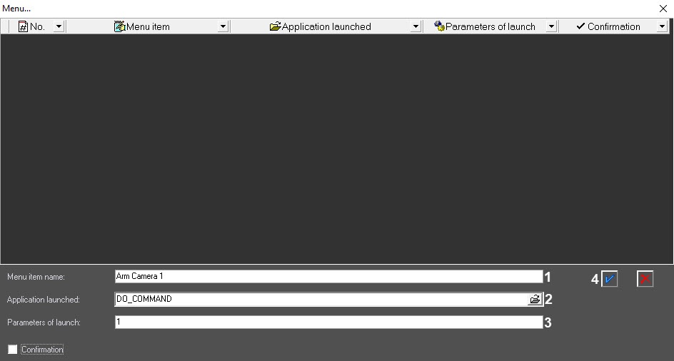 - In the Menu item name field enter the menu item name that will be displayed in the context menu on the Control panel (1).