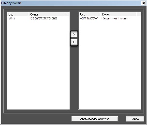 The Filter by owners window appears. The list of available user-owner pairs is on the left, the list of selected ones is on the right.