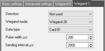- Not used—the Wiegand interface isn’t used to transfer information (default). If you select this value, further configuration isn’t relevant.