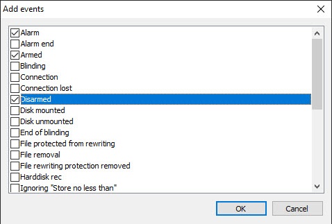 In the list of the Event type column, select events that are to be displayed in the protocol box. If the event type is not specified, then all events registered by the selected object will get to the protocol.