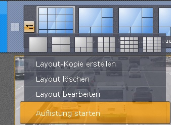 Zum Start des Diashowsmodus müssen Sie auf dem Monitor der Videoüberwachung das Kontextmenü der Layout-Steuerleiste aufrufen durch Betätigen der Schaltflache  und die Option Diashow starten wählen.