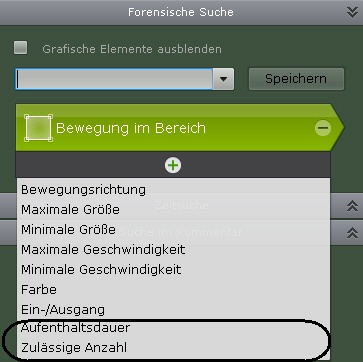 Diese Registerkarten werden unter der Registerkarte Forensische Suche im Suchfeld angezeigt