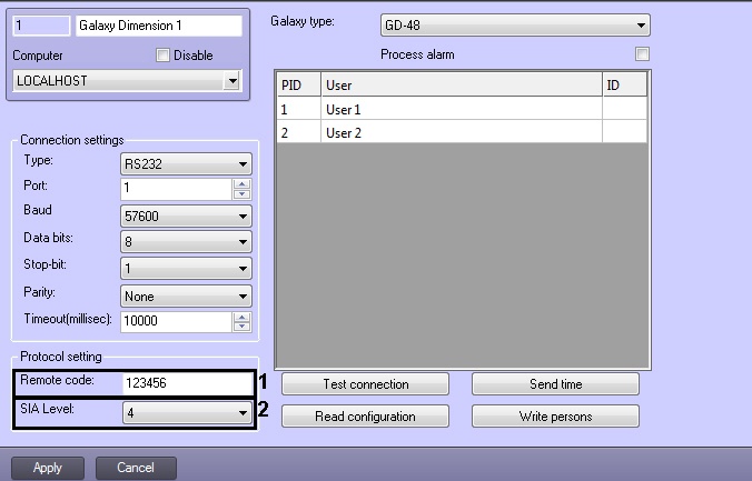 - Configuring interaction between ACFA Intellect and the Honeywell Galaxy Dimension control panel