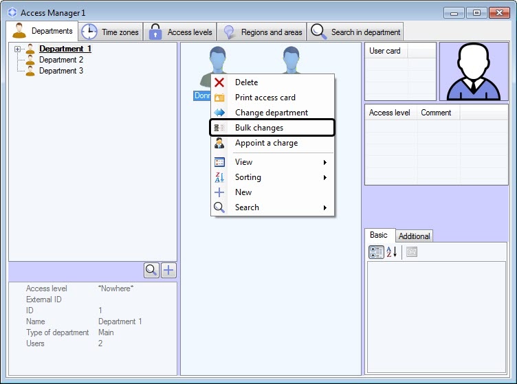 - Working with users in the Access Manager software module