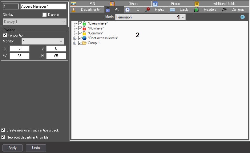 - Rights to access the access levels in the Access Manager