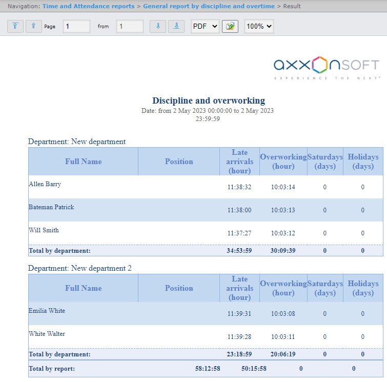 General report by discipline and overtime