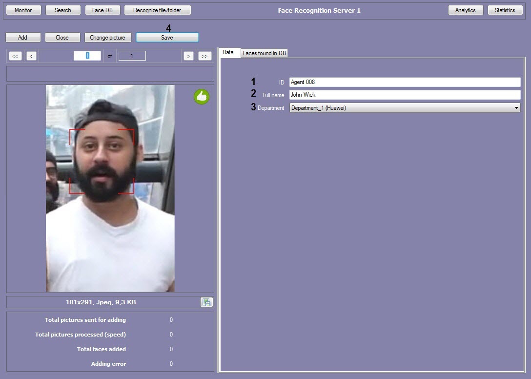 - Adding images to the reference face database