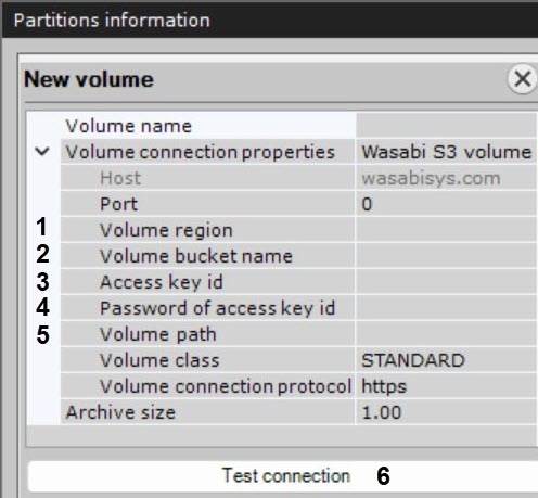 Configuring an archive volume based on the Wasabi solution
