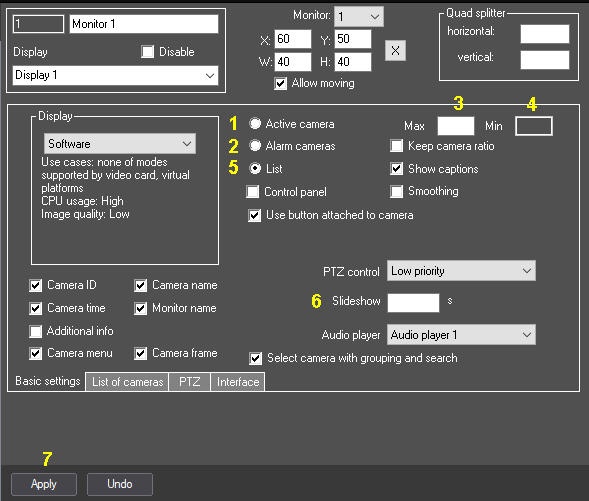 Configuring the display mode of camera windows