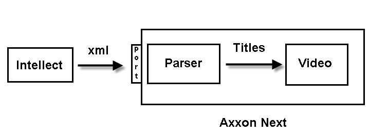 The XML package, received on the Axxon Next Server, is processed by the parser, described in Saving a parser. The titles, received after the parser processing, are overlaid on video in Axxon Next.