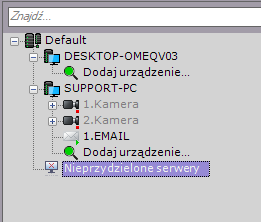 Jeśli Serwer nie będzie dostępny podczas jego dodawania do Domeny Axxon, będzie wyświetlany w drzewie obiektów ikoną .
