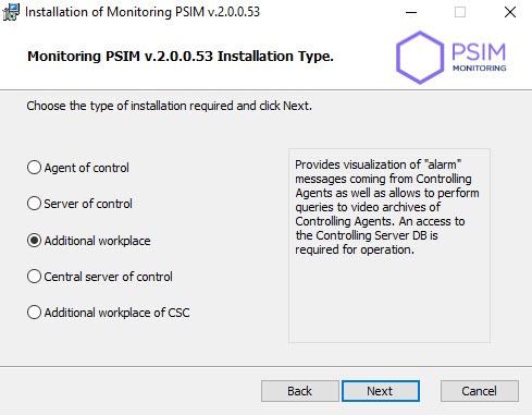 To install Monitoring PSIM in the Additional workplace software configuration, do the following: