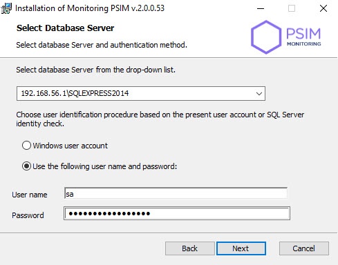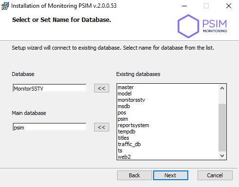 By default, the name of the database is "MonitorSSTV", and its files are stored in the SQL Server folder. |