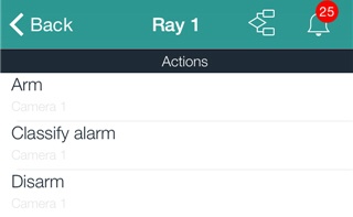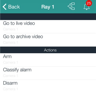 If a sensor is linked to a camera (see The relationship between video cameras and sensors and relays), it is also possible to switch to live video mode or viewing of video recorded by the camera.