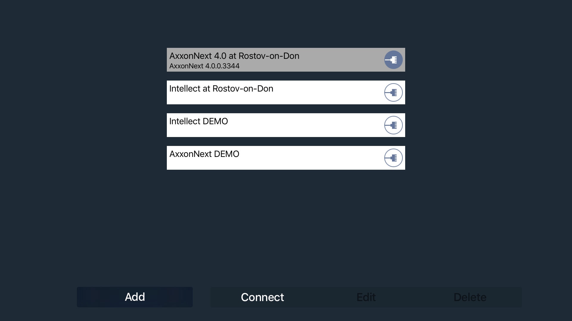 Connection and configuration of the Servers in the Apple TV Client is performed in a way similar to the iPhone and iPad Client (see Connecting to the server and working with servers in the mobile iOS Client).