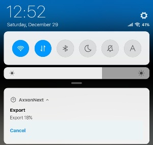 As a result, the video export progress will be displayed in the notification panel. To cancel the video export, click Cancel on the AxxonNext notification.