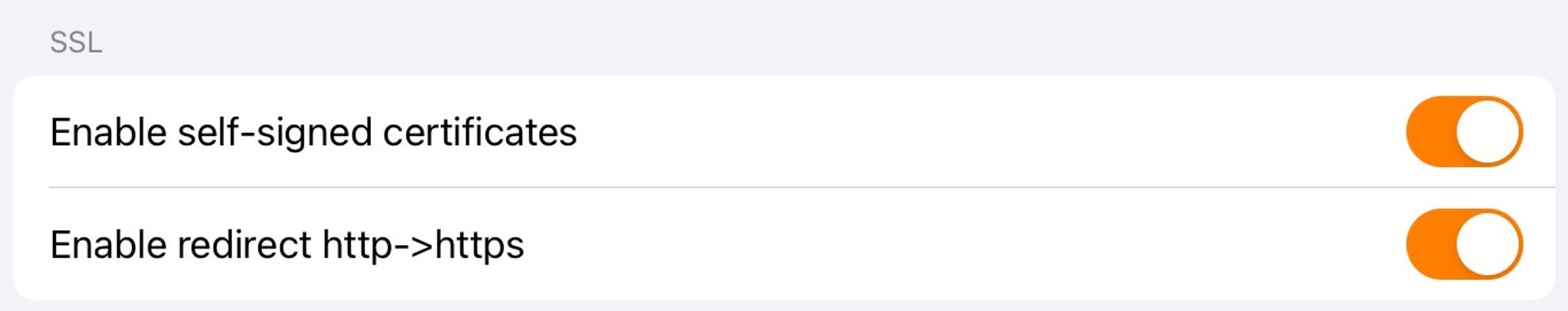 After the SSL is enabled, the HTTP connection to Servers that use HTTPS will become unavailable. It is necessary to manually change the connection URL of each such Server by specifying https:// instead of http:// (see Direct Server connection in the AxxonNet iOS mobile client), or activate the Enable redirect http->https parameter (see below).