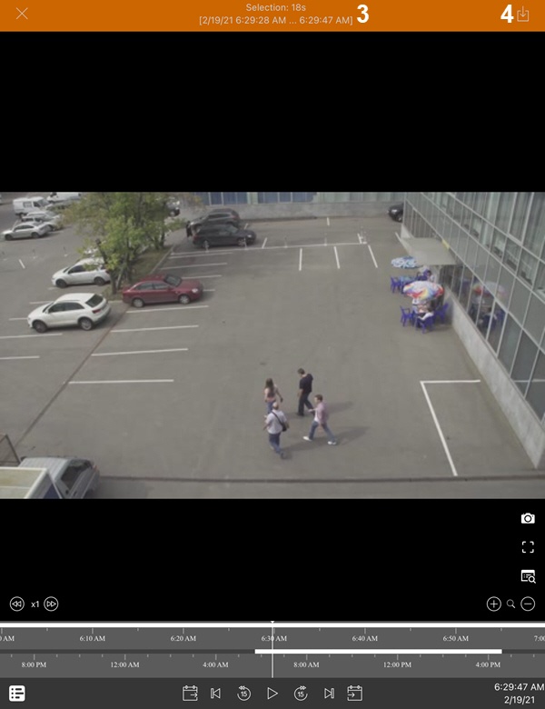 - In the archive view mode, pause the archive playback at the point that will be the beginning of the exported video, and click the