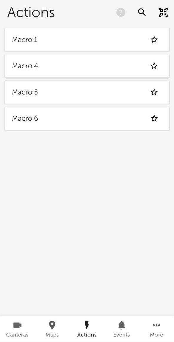 The available macros in the list depend on the macros on the Server to which the mobile client is connected (for Intellect, see Creating and using macros, for Axxon Next, see Configuring Macros).