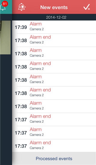 To view the list of events, click the icon