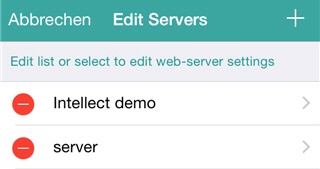 und um zu den Servereinstellungen zurückzukehren, ihn in der Liste auswählen.Um die Bearbeitung abzuschließen, tippen Sie auf Abbrechen.