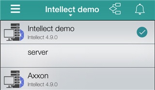 Beim ersten Start sind zur Verbindung die Demoserver der Softwareplattformen Intellect und Axxon Next verfügbar, um die Möglichkeiten des Clients zu demonstrieren.