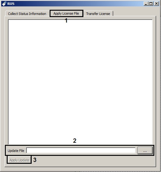 13. Run the RUS_EOAWT.exe tool and go to the Apply License File tab (1).